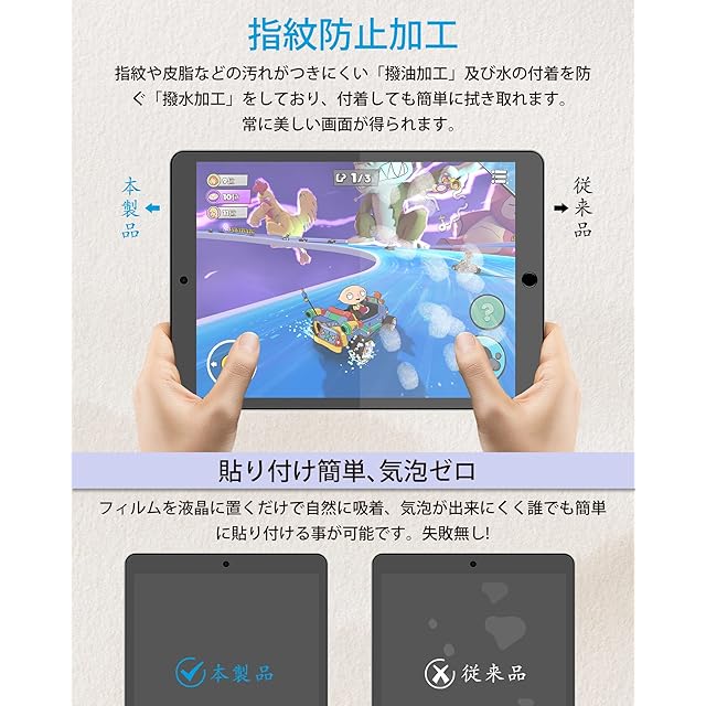 【反射防止・指紋防止】ペーパーライクのアンチグレア加工防止、太陽や照明の反射を抑え、光の映り込みを防ぎため、アウトドアで端末の使用に影響が有りません、目に優しく見やすい画面を保ちます。撥油加工をしており、指紋や汚れが付きにくくになり、付着しても簡単に拭き取れます。常に美しい画面と滑らかでよい操作が得られます。
