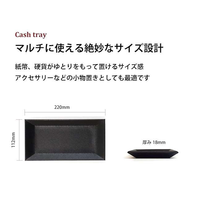 使いやすさとカタチにこだわった薄型トレイ。リアルレザー調の合成皮革を使用しており、シンプルながら高級感のある佇まい。</br>しっかりとした硬さがあるため、腕時計などの小物置き、ペントレイ、キャッシュトレイなど、様々な用途にマッチします。</br></br> ▶ 高級感のあるリアルレザー調の合成皮革を使用しております。</br> ▶ 多少の水濡れは、すぐに拭き取って頂ければ問題ございません。</br> ▶ 紙幣も余裕をもって置けるサイズなので、キャッシュトレイ、カルトン つり銭トレイとしてもおすすめです。</br></br> ■注意事項</br> ・モニターの発色具合によって実際の物と色が異なる場合がございます。</br> ・アルコールなどで拭き取りを行うと色落ち・変色することがありますのでご注意ださい。</br> ・濡れた場合は乾いた布で拭き取り、陰干し後に乾かしてからご使用下さい。