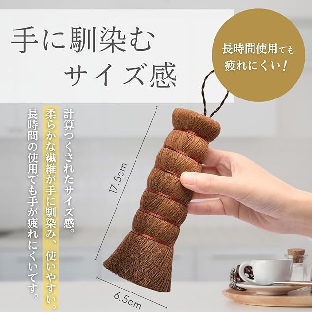✅【天然素材使用】 高品質なシュロの繊維を厳選して使用しており、手作業で丁寧に仕上げています。シュロたわしは、天然のシュロの繊維を使用して作られた、長年愛され続ける日本の伝統的な掃除道具です。その柔らかさと適度な硬さのバランスにより、さまざまな用途で活躍します。環境に優しく、安心してご使用いただけます。 ✅【耐久性抜群】 シュロの繊維は耐久性が高く、長く使用しても形状を保ち、繊維が抜け落ちにくいのが特徴です。【エコフレンドリー】天然素材であり、使用後は土に還る環境に優しい製品です。 ✅【マルチ用途】キッチン用品の洗浄、浴室掃除、野菜の泥落としなど、多用途に使用できます。特に、鍋やフライパンの焦げ付きも簡単に除去できます。【手に優しい】柔らかな繊維が手に馴染み、使いやすいサイズで、長時間の使用でも手が疲れにくいです。 ✅【使用方法】使用前に軽く水で湿らせてください。- 洗剤を使わずに、水だけで汚れを落とすことができるため、環境に優しい掃除が可能です。- 使用後は、しっかりと水気を切り、風通しの良い場所で乾燥させてください。 ✅【注意事項】初めて使用する際、多少の繊維が抜けることがありますが、品質に問題はありません。- 火のそばでの使用は避けてください。