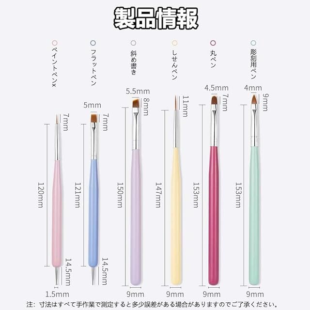 【セット内容】6種類のネイルブラシセットになります。 画筆の筆先は6種異なるの形状、簡単に好きなネイルアートデザインを創り出しましょう!