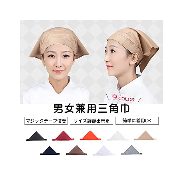 [OTAKUMARKET] 三角巾 シンプル 無地 大人用 男女兼用 カフェ 業務用 料理教室 調理実習 清掃 美容院 マジックテープ付き 簡単に取り付ける 全6色 (ベージュ, 1) | BASE LINE