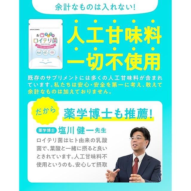 商品名:【薬学博士推薦】お口すこやかロイテリ菌 ロイテリ菌 タブレット 子供 赤ちゃん 葉酸400μg 人工甘味料 不使用 サプリ 口臭ケア エチケット 国産 30日分 PRO GRADE FORMULA