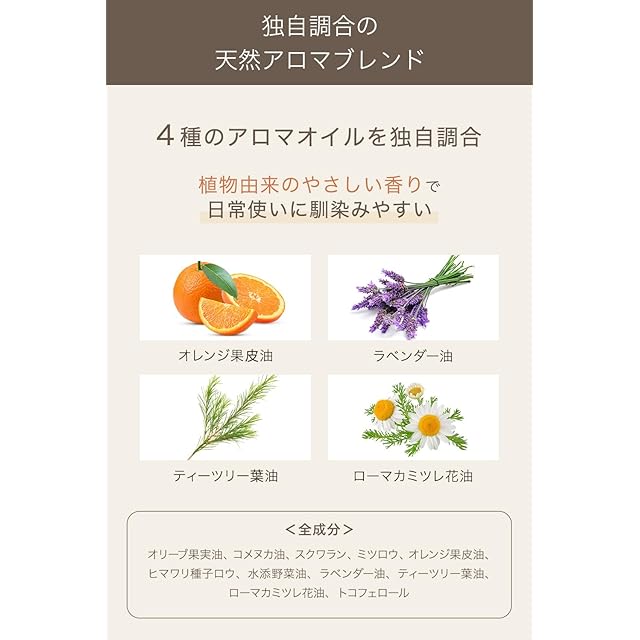⭐【独自調合の天然アロマブレンド】4種のアロマオイルを独自調合。シトラス×ハーブのほのかな香りです。植物由来のやさしい香りで日常使いにも。