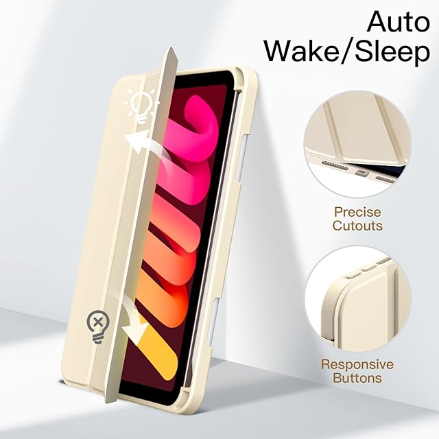 JETech iPad mini (A17 Pro 2024 モデル、第7世代) / mini 6 (2021モデル、第6世代) Pencil収納可能 透明バックカバー 薄型 スタンド 衝撃吸収 タブレットカバー オートウェイク/スリープ機能 (スターライト) | BASE LINE