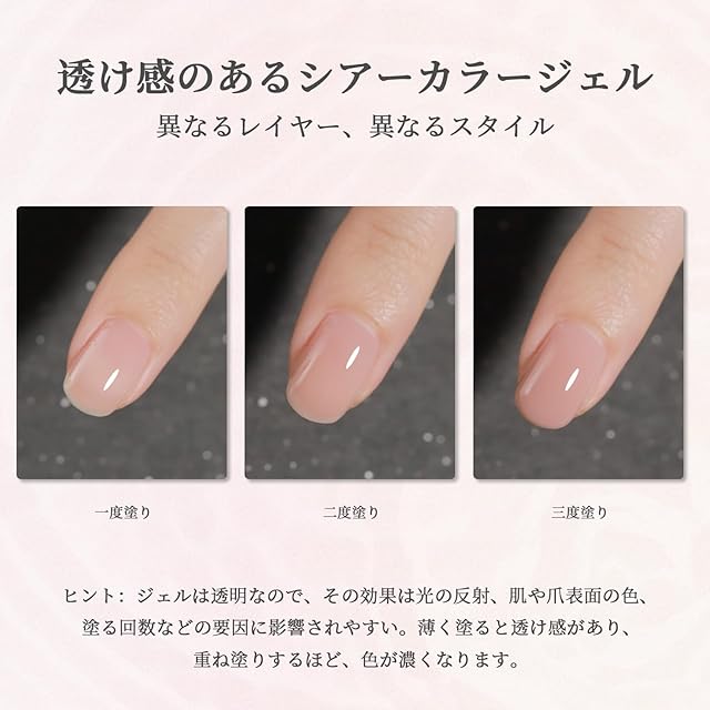 emigoro ジェルネイル シアーカラー カラージェル ベージュ ピンク 透け感 シアーカラージェル ポリッシュ 10ml/本 初心者&プロ適用 UV/LED対応 6色セット | BASE LINE