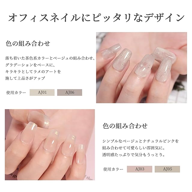 「すべての肌色に合うスキンカラー」あらゆる肌の色を考えて作られたベージュ・ピンク系カラージェル、塗った瞬間手肌に馴染み!ナチュラルな雰囲気が好きな人や、透明感があっても程よく色味が欲しい方に大人気!甘くなりすぎないカラーで日常生活に適して、オフィスや学校でも活躍すること間違いなし。自然に肌に溶け込み、どんな服装にも合わせやすい色味、ちゃんとした透け感で清潔感のある自然な指先美人に。