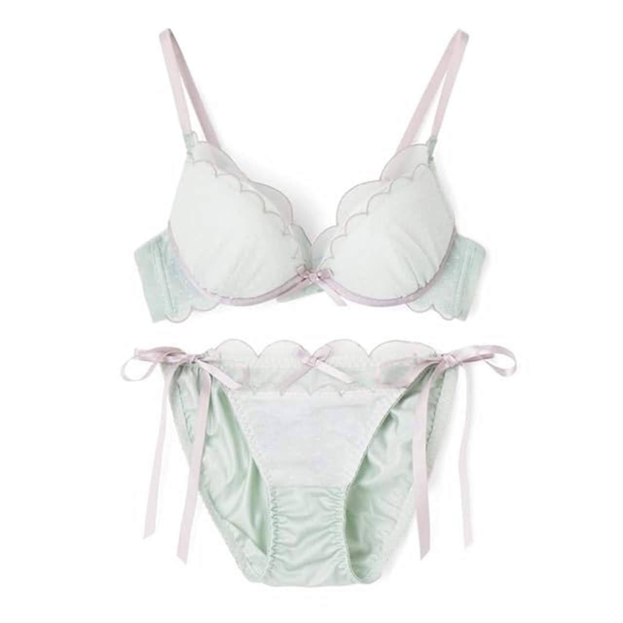 商品名:[ノーザリー] インナーセット シアードットチュール ブラジャー&ショーツセット グリーン D65