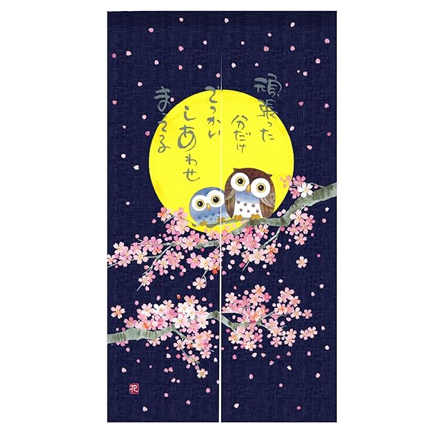 のれん 暖簾 七福ろう 大漁 花鳥風月間仕切りカーテン おしゃれ 目隠し 見えにくい 玄関 温泉 旅館 ホテル 廊下 お風呂 洗面所 トイレ オーダー可 ドアカーテン キッチ リビング 飲食店 出入り口 桜 幅85丈170cm