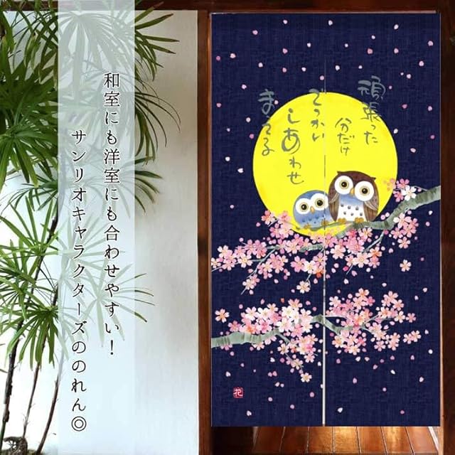 のれん 暖簾 七福ろう 大漁 花鳥風月間仕切りカーテン おしゃれ 目隠し 見えにくい 玄関 温泉 旅館 ホテル 廊下 お風呂 洗面所 トイレ オーダー可 ドアカーテン キッチ リビング 飲食店 出入り口 桜 幅85丈120cm | BASE LINE