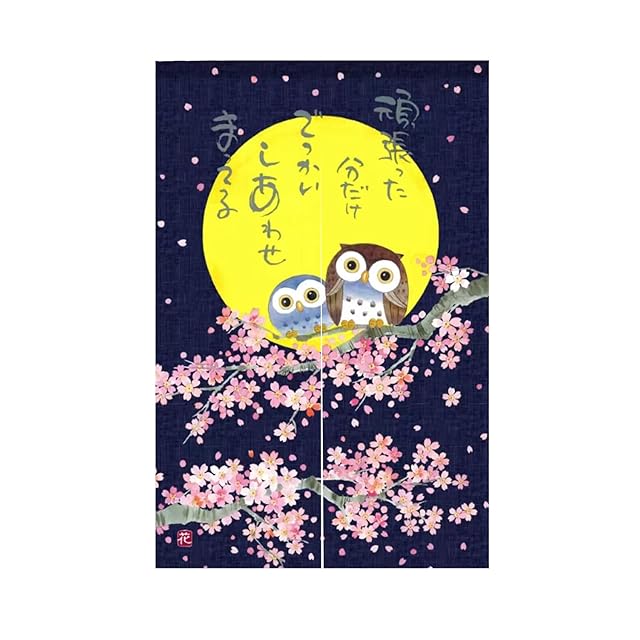 のれん 暖簾 七福ろう 大漁 花鳥風月間仕切りカーテン おしゃれ 目隠し 見えにくい 玄関 温泉 旅館 ホテル 廊下 お風呂 洗面所 トイレ オーダー可 ドアカーテン キッチ リビング 飲食店 出入り口 桜 幅85丈120cm