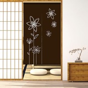 のれん 暖簾 七福ろう 大漁 花鳥風月間仕切りカーテン おしゃれ 目隠し 見えにくい 玄関 温泉 旅館 ホテル 廊下 お風呂 洗面所 トイレ オーダー可 ドアカーテン キッチ リビング 飲食店 出入り口 花 ブラウン幅75丈170cm | BASE LINE