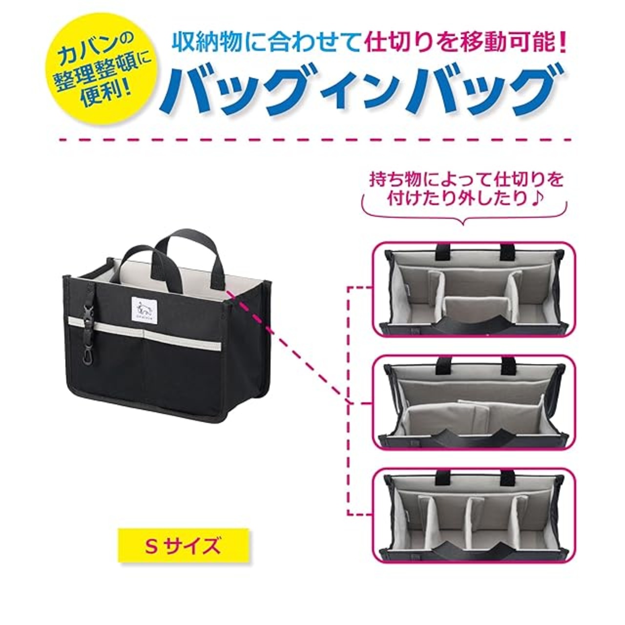 カバンの中の整理整頓に便利。収納物に合わせて仕切りを移動可能なバッグインバッグ
