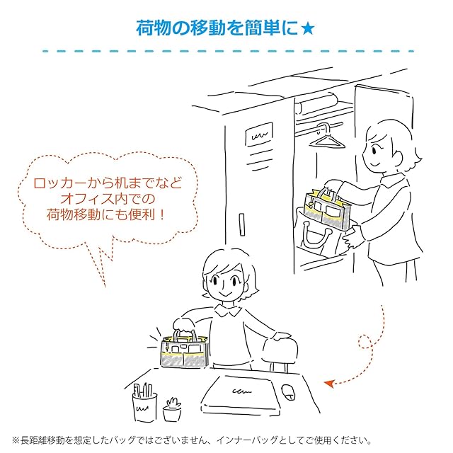 持ち運び用の取っ手がついているのでカバンから取り出してロッカーからオフィスまでの荷物移動に便利。