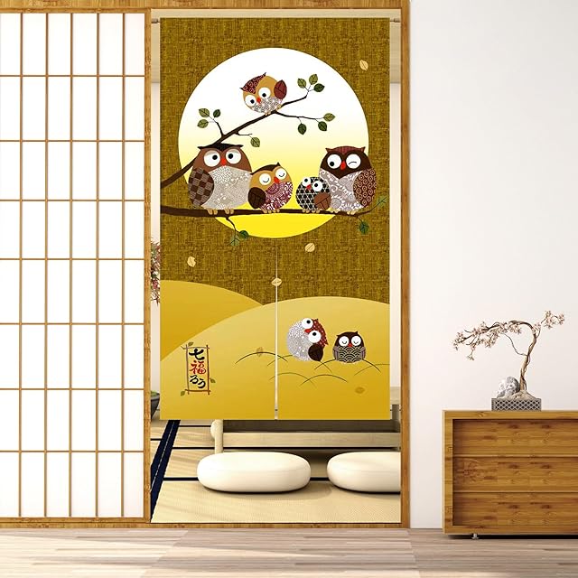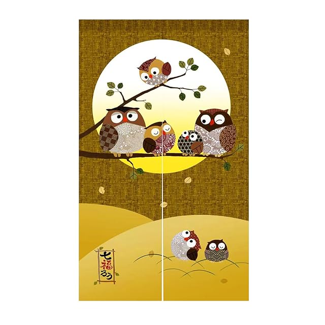 のれん 暖簾 間仕切りカーテン おしゃれ 目隠し 見えにくい 玄関 温泉 旅館 ホテル 廊下 お風呂 洗面所 トイレ オーダー可 ドアカーテン キッチ リビング 飲食店 出入り口 七福ろう(黄色い)幅85丈150cm