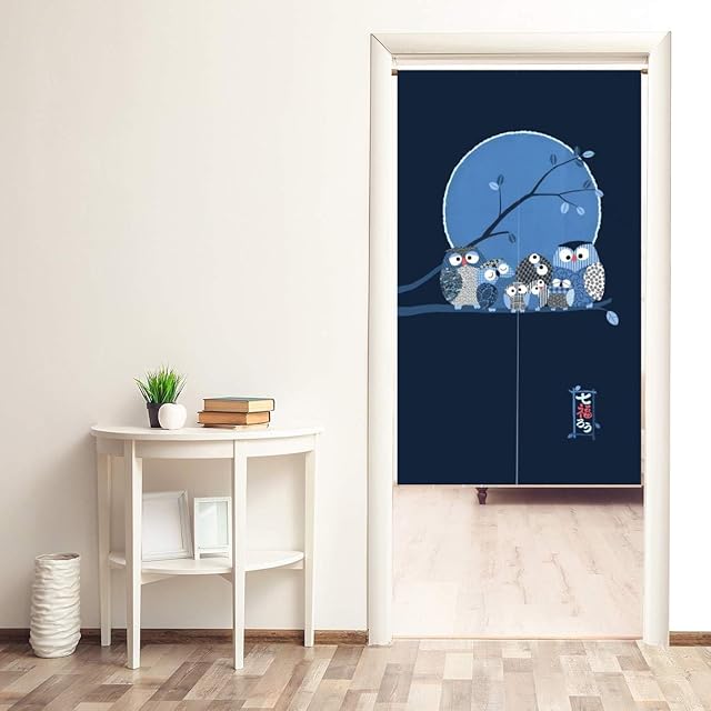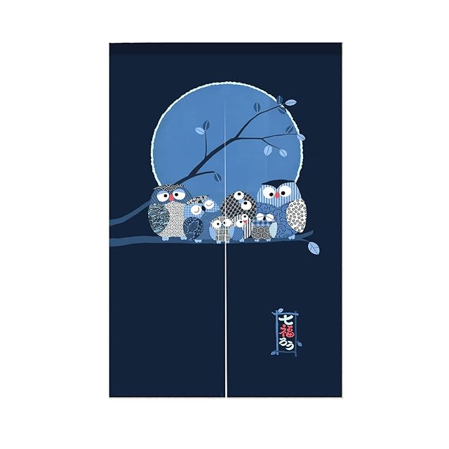 商品名:のれん 暖簾 間仕切りカーテン おしゃれ 目隠し 見えにくい 玄関 温泉 旅館 ホテル 廊下 お風呂 洗面所 トイレ オーダー可 ドアカーテン キッチ リビング 飲食店 出入り口 七福ろう(ダークブルー)幅85丈120cm