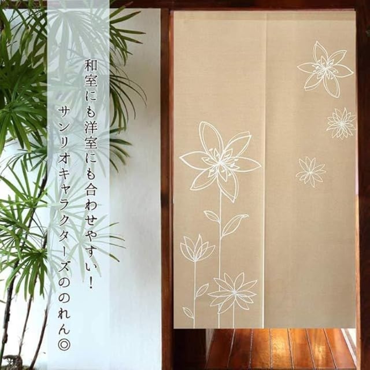のれん 暖簾 間仕切りカーテン おしゃれ 目隠し 見えにくい 玄関 温泉 旅館 ホテル 廊下 お風呂 洗面所 トイレ オーダー可 ドアカーテン キッチ リビング 飲食店 出入り口 花(ベージュ)幅75丈120cm | BASE LINE