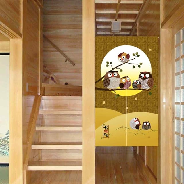 のれん 暖簾 間仕切りカーテン おしゃれ 目隠し 見えにくい 玄関 温泉 旅館 ホテル 廊下 お風呂 洗面所 トイレ オーダー可 ドアカーテン キッチ リビング 飲食店 出入り口 七福ろう(黄色い)幅75丈150cm