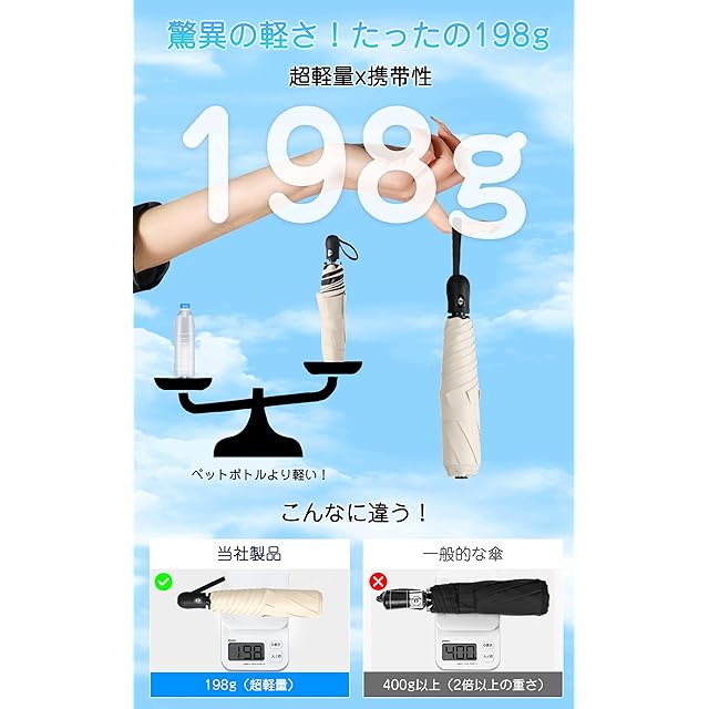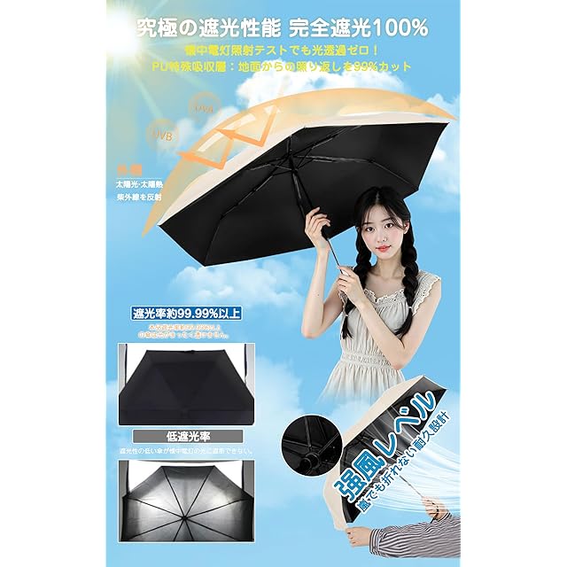 日傘 AYO 折り畳み日傘 UVカット100% 遮光 遮熱 折りたたみ傘 晴雨兼用 超軽量 ワンタッチ自動開閉 コンパクト 紫外線遮断 日焼け防止 耐風撥水 携帯便利 メンズ レディース 男女兼用 暑さ対策 父の日 母の日のプレゼント (ベージュ,傘のふさ) | BASE LINE
