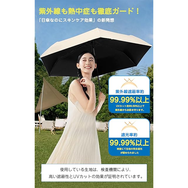 【遮光 猛暑日の日焼け対策に最適な】本製品は遮光性に優れたブラックラバーコート加工が施されたワンタッチ自動開閉折り畳み傘です。高い遮光効果と日焼け防止機能を兼ね備え、UVカット率は驚異の99.9%以上を実現。夏の厳しい日差しや紫外線から肌を徹底的に保護します。紫外線A波(肌の深層まで届く)、B波(肌を赤くする)、C波を含む全波長の紫外線を99.99%以上カット。猛暑日の日焼け対策に最適な、太陽光線を99.99%遮断する最高級日傘です。素材選定から製造工程まで厳格な品質管理を実施しており、紫外線による劣化が少なく、通常の傘に比べ約3倍の耐久性を誇ります。