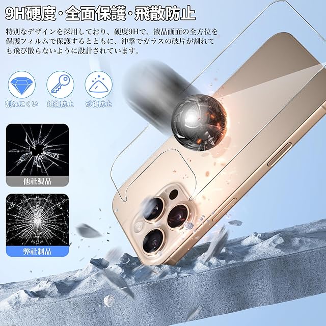 【硬度9H・飛散防止】飛散防止加工により、万が一割れてもガラス破片が飛び散りにくい。ナイフなどの鋭利なガラスを使用しても損傷を与えない。内蔵シリコンコーティングは衝撃を緩和し、画面へのダメージを最小限に抑えます。特殊な飛散防止設計により、万が一割れても飛散せず、携帯電話をしっかりと保護することができます。