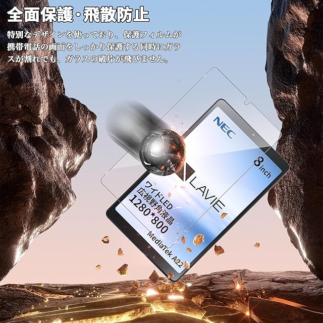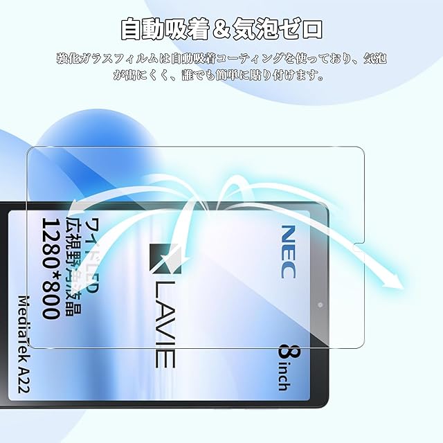 For NEC LAVIE T8 フィルム 8.7インチ タブレット NEC LAVIE T8 対応 保護フィルム 強化ガラス 高感度タッチ 高透過率 硬度9H 指紋防止 Greerass 気泡防止 撥水撥油 耐衝撃 貼り付け簡単 液晶保護 超薄飛散防止 | BASE LINE