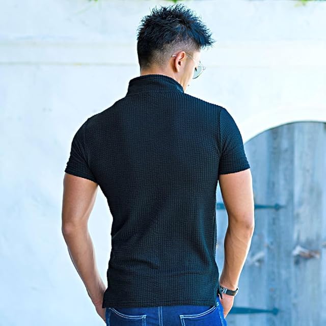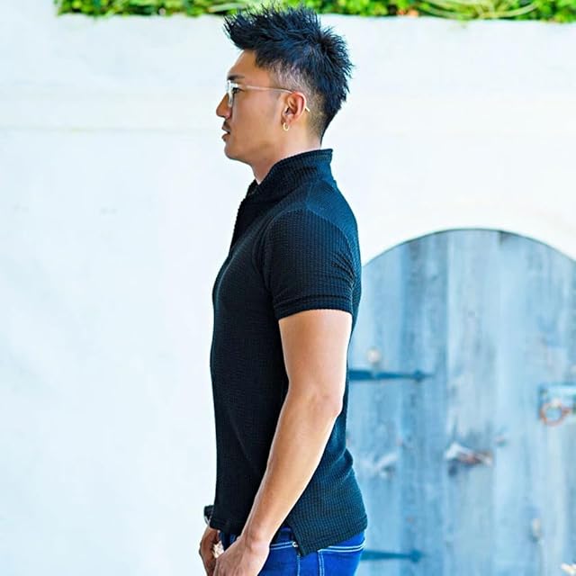 商品名:[キャバリア] ポロシャツ メンズ 半袖 ブランド ゴルフ シアサッカー ポロ カジュアル イタリアンカラー スキッパー 細身 タイト 清涼感 ひんやり シンプル ユニセックス ファッション CATN21-20【-】 (48(XL), BLK(ブラック))