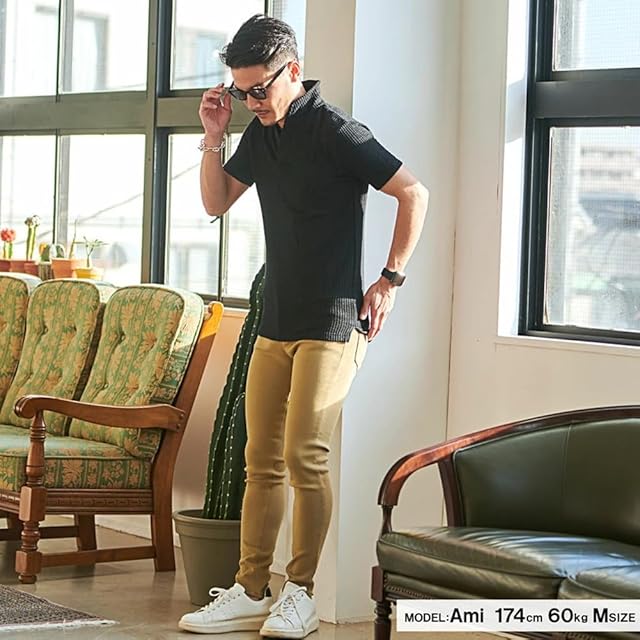SILVER BULLET(シルバーバレット)にCavariA【キャバリア】から、<br> ワイヤー入りイタリアンカラーシアサッカーポロシャツが入荷しました。<br> 表面の凹凸が特徴的で通気性に優れたシアサッカー素材を採用。<br> 清涼感がありこれからの時期に最適な一枚です。<br> 美しく立体的なロールが魅力のイタリアンカラーは、上品で色気のある襟元を演出。<br> 更にワイヤーを内蔵したことで好みの形に変えられます。<br> 襟元が開いたスキッパータイプのポロシャツなので首元をスッキリと綺麗に見せてくれます。<br> 細身でスタイリッシュなシルエットですが伸縮性もあるので快適な着心地。<br> 春夏のコーディネートの主役になること間違いなしのアイテムです。<br> <br> ※こちらのアイテムは通常より細身(タイト目)のデザインでピタッと着るタイプです。<br> ※モデル画像は照明などの影響により実際の商品と異なる場合がございます。<br> <br> サイズ(cm)<br> 42(S):着丈62身幅43肩幅38袖丈17<br> 44(M):着丈64身幅45肩幅40袖丈18<br> 46(L):着丈66身幅47肩幅42袖丈19<br> 48(XL):着丈68身幅49肩幅44袖丈20<br> ※平置き計測。<br> ※やや小さめの作りとなっております。ご注意下さいませ。<br> <br> 素材<br> 綿75% ポリエステル20% ポリウレタン5%<br> <br> モデル<br> Ami:身長174cm 体重60kg 44(M)サイズ着用<br> TAKA:身長185cm 体重70kg 46(L)サイズ着用<br> <br> カラー展開<br> ブラック/ネイビー/ホワイト/ストライプ<br> <br> アイテムガイド<br> 伸縮性-あり 透け感-なし<br> 生地の厚み-普通 裏地-なし<br> <br> ※当スタッフの個人的な感想になります。<br> お客様により感じ方等異なる場合がございますので、<br> あくまでもご参考としてご利用ください。<br> <br> スタッフ着用サイズ<br> スタッフA(180cm/75kg)<br> 体型:がっちり<br> 普段着用サイズ:L〜XL<br> 48(XL)サイズでジャストサイズで着用出来ます。<br> <br> スタッフB(172cm/75kg)<br> 体型:がっちり<br> 普段着用サイズ:M〜L<br> 46(L)サイズでジャスト、<br> やや小さめなので48(XL)でややゆとりをもって着用出来ます。<br> <br> スタッフC(173cm/60kg)<br> 体型:細身<br> 普段着用サイズ:M<br> 44(M)サイズでジャスト<br> やや小さめなので46(L)でややゆとりをもって着用出来ます。