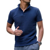 商品名:[キャバリア] ポロシャツ メンズ 半袖 ブランド ゴルフ シアサッカー ポロ カジュアル イタリアンカラー スキッパー 細身 タイト 清涼感 ひんやり シンプル ユニセックス ファッション CATN21-20【-】 (46(L), NAVY(ネイビー))