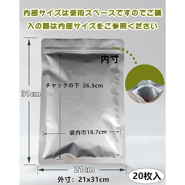 ✅【サイズと数量】20枚入 外寸:幅21x長さ31cm 、内寸:幅18.7x長さ26.5cm。真空パックが可能な ジッパー付き アルミ袋、両面0.24mm厚、再利用可能ジッパー。ペットフードや、ドッグフード、キャットフード 真空 保存 袋。コーヒー粉、飴などの小物入れに最適です。外出時の持ち運びに便利。簡単にマーキングできるラベルとステッカーが含まれています。アルミ袋上部の角は丸角仕様のため怪我をしにくいですが。