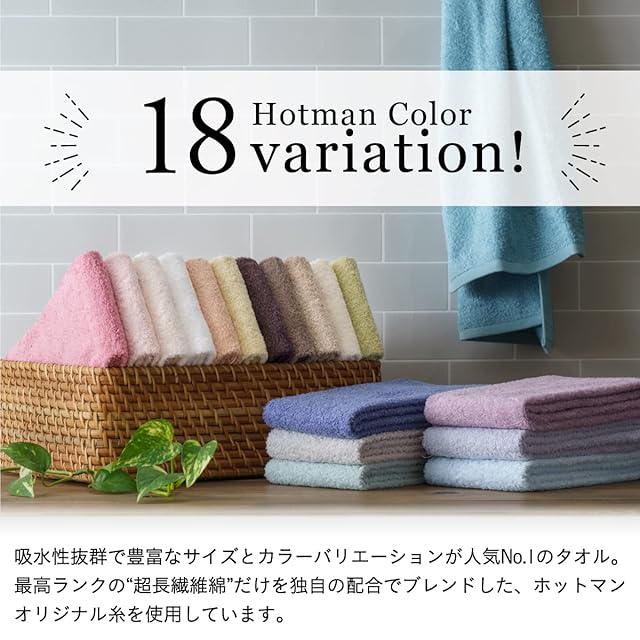【希少価値の高い超長繊維綿】地球上の綿の中で、たった5%しか生産できない希少価値の高い超長繊維綿のみを、ホットマン独自の配合でブレンド。超長繊維綿は、シルクのような滑らかさと光沢を持ち、毛羽落ちが少なく、強度・吸水性にも優れています。
