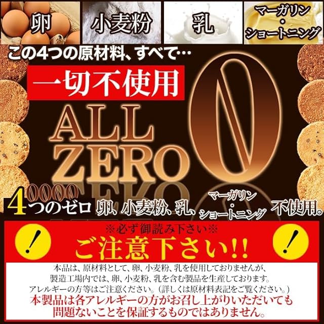 ✅【4つのゼロ】卵、小麦粉、乳、マーガリン・ショートニングこの4つの原材料、すべて…一切不使用!おからと豆乳でサクッとした程よい食感をお楽しみいただけます。