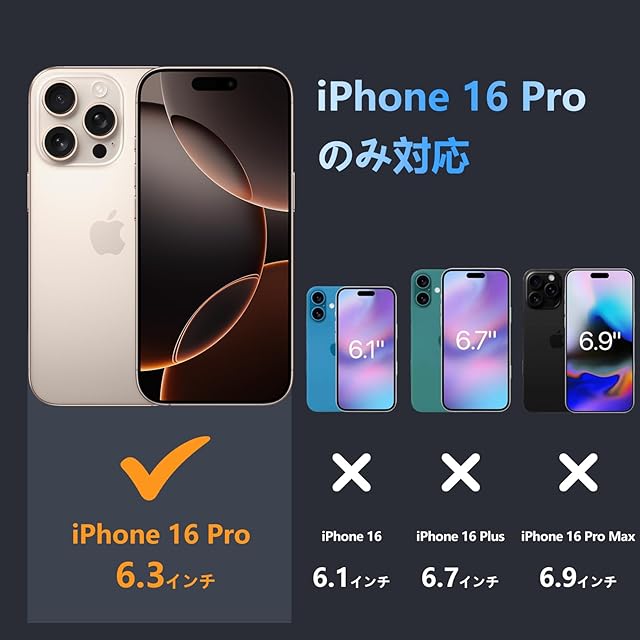 【対応機種(iPhone 16 Pro)・同梱品】iPhone 16 Pro 6.3インチ 専用ケースです。スピーカーやカメラ、ポートに対応した精確なカット加工と、iPhone 16 Proのボタンにぴったりフィットしている設計により、機能性がしっかり保たれていながら、使いやすさも抜群です。同梱品:1.iPhone 16 Pro ケース*1 2.iPhone 16 Pro ガラスフィルム*1 3.セットの貼り付けツール*1