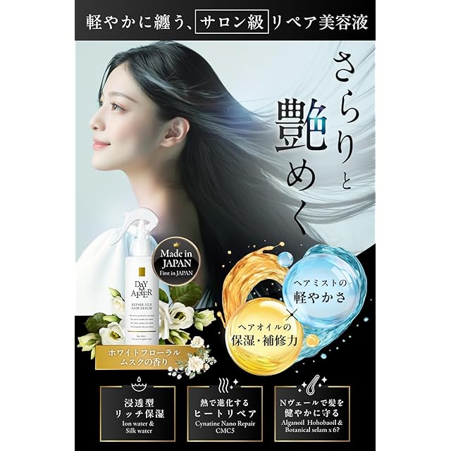 [サロン級リペアヘア美容液] ヘアオイル×ヘアミスト 7種のオーガニック成分と2種の高機能ケラチンによる保湿処方 200mL 【GMP取得の化粧品部門が独自処方開発のヘアセラム】